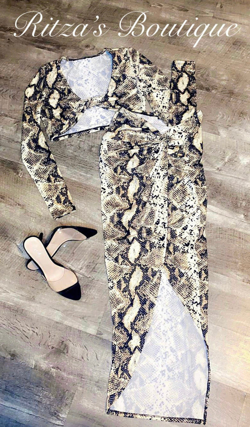 •2PC SET•LONG SLEEVE CROP TOP•SIDE SLIT